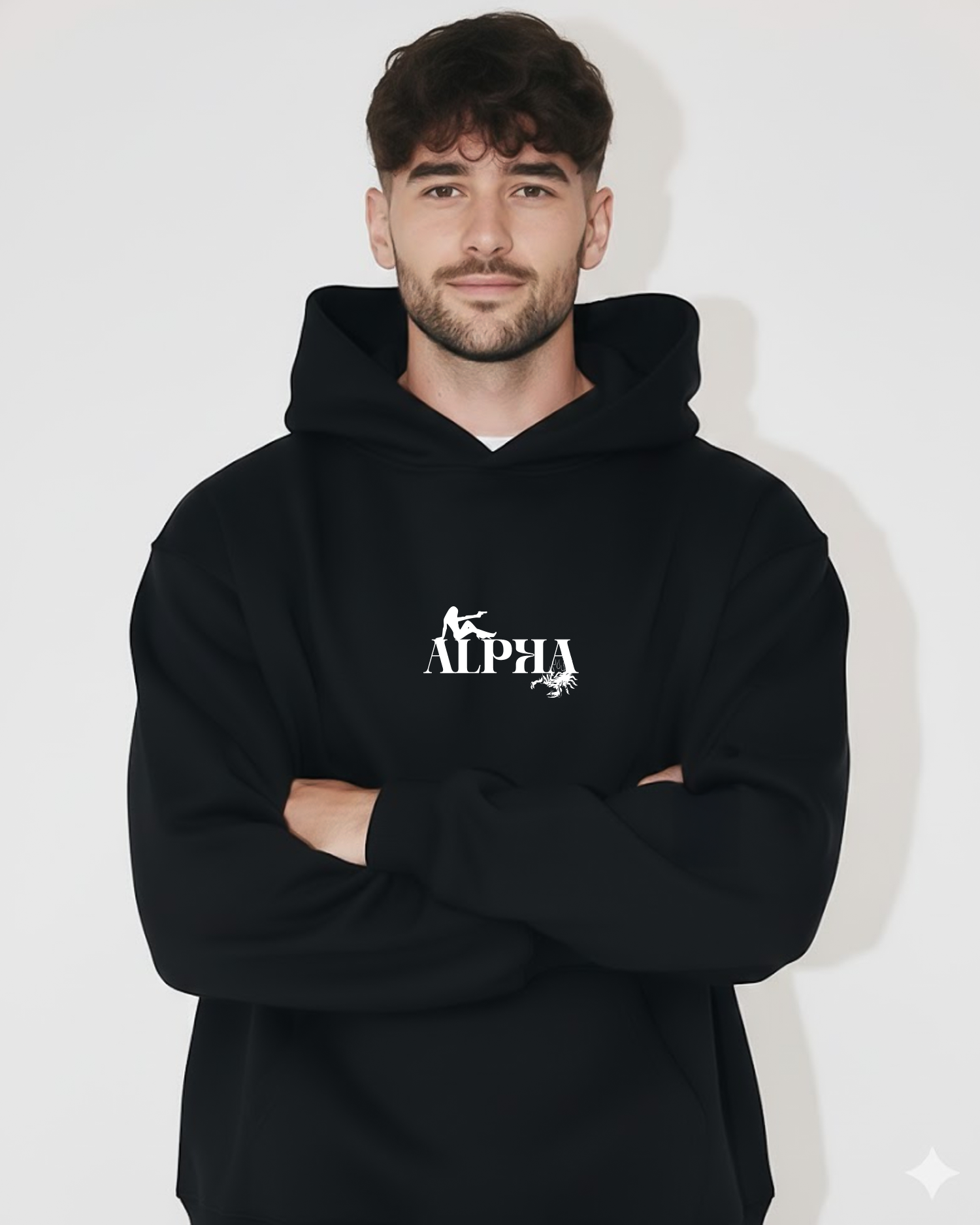 Step into bold energy with our Alpha Graphic Oversized Hoodie.